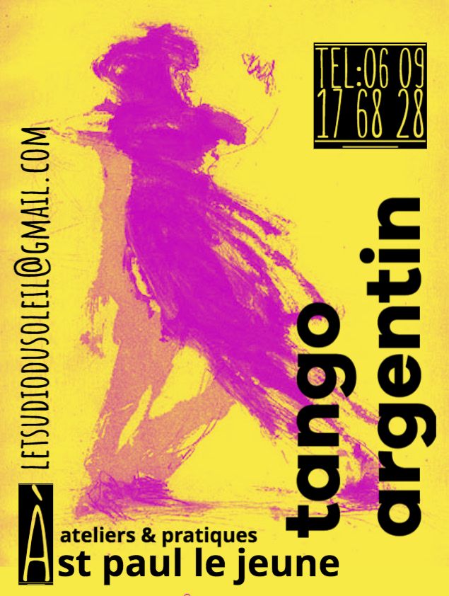 Milongas : Des bals « Tango Argentin » ont lieu au Studio Du Soleil de 20H30 à 0h30 – Le 2ème et le 4ème Samedi de chaque mois, (parfois +) nous y invitons des DJ de qualité, et Souvent des groupes de musiciens pour des Concerts (Live) vous offrant des soirées enflammées!