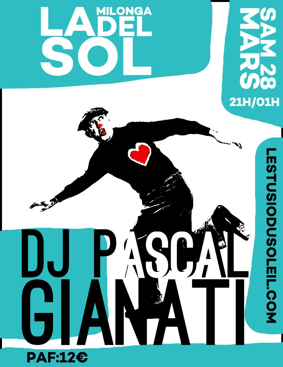 Le Studio a le plaisir d’inviter une nouvelle fois Los Maestros: GĂ©raldine Giudicelli y Julio Luque… pour un stage « Milonga et TraspiĂ© » (de 19h Ă 20h30), suivi d’une auberge espagnole (pour les stagiaires), puis de la Milonga (Ă partir de 21h).PAF: 20⏠(Stage + Milonga) – 8⏠(Milonga seule) DJ Elisa©